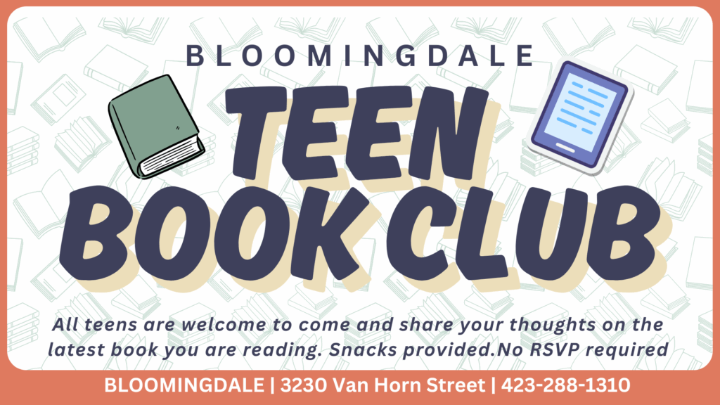 All tweens/teens (middle school through high school) are welcome to come and share your thoughts on the latest book you are reading. Snacks Provided!